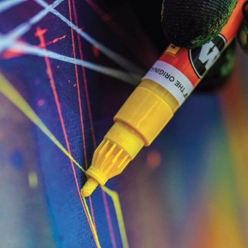 Essayez-le par exemple avec vos marqueurs Molotow One4All : l'opacité de cette peinture acrylique fluide et la vibrance des couleurs disponibles vous assureront un résultat optimal.