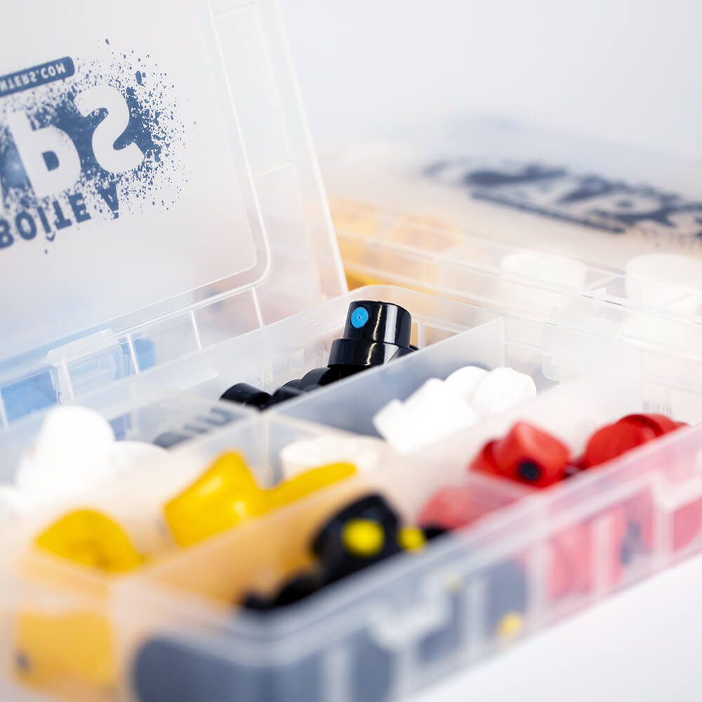 Vous n'arrivez pas à vous décider ? Le plus simple reste de tester nos caps pour comprendre ce qu'ils ont dans le ventre. Nous vous proposons différents packs de caps pour bombes de peinture qui vous permettront de découvrir quelques références, et de faire vos propres essais. Toutes ces références sont universelles ! Trouvez la diffusion qui correspond le mieux à votre projet, et soyez certain d'avoir toujours le bon modèle sous la main.