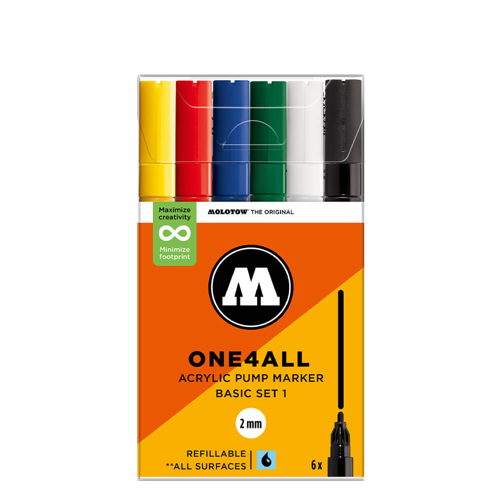 - Pochettes de 6 marqueurs à pomper modèle Molotow One4All 127HS