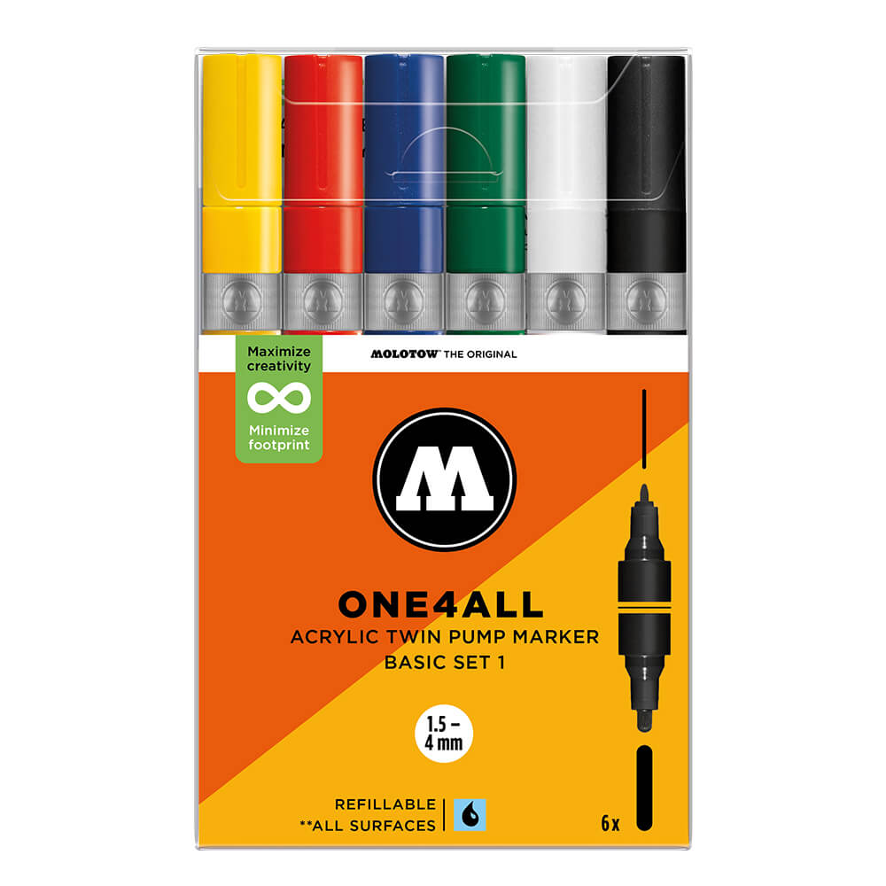 - Pochettes de 6 marqueurs à pomper modèle Molotow One4All Twin